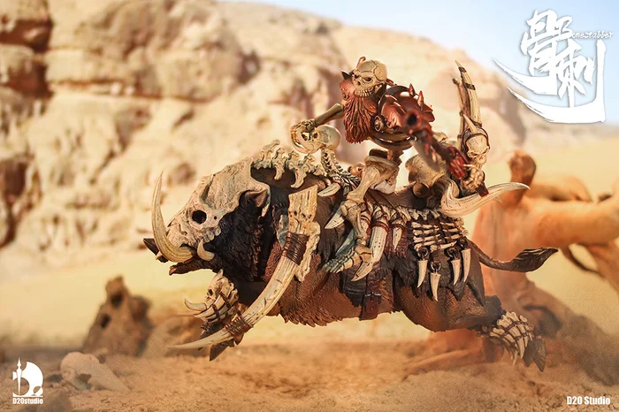 From D20studio comes an original character from the mysterious wilderness of Northeast Asia, the legendary giant wild boar, Battle Boar Bonestabber! Measuring 7.9″ tall and designed by artist Li Xin, this massive boar is cruel and ferocious in nature to survive a harsh environment where only the strongest survive. Impressive sculpting captures its powerful musculature, horns, and fur, and it comes with bone armor and a battle mount perfect for 1/12 scale figures. Itβs even the perfect size to display with 1/6 scale figures as their pet!