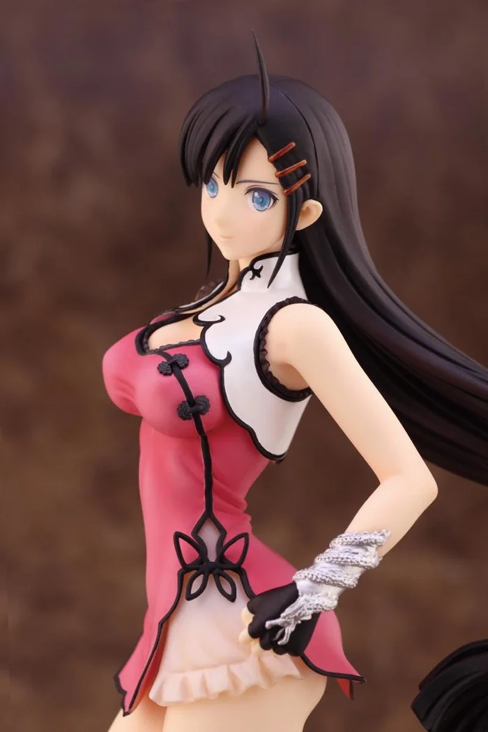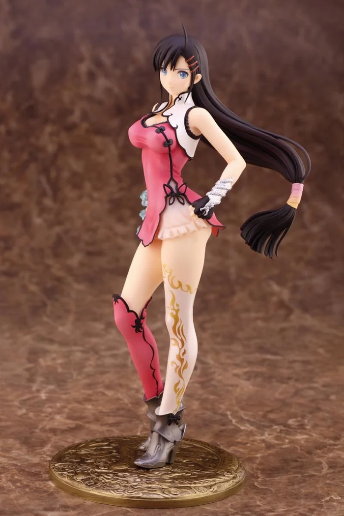 This cute-looking lady is Won Pairon from the hit SEGA RPG Blade Arcus from Shining EX! In her two-tone version as seen in the game, Won Pairon comes in a Chinese Cheongsam-style pink and white dress with a white cloud and black butterfly motif, one pink sock and one white fire motif on the other leg, a silver dragon ornament on one arm and a blue fire effect on the other.