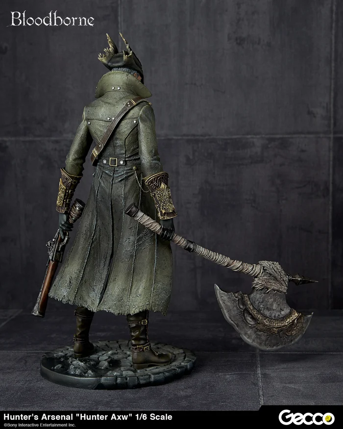 If you’re strong enough to wield this axe, no monster shall stand in your way! The Hunter’s Axe is one of the starting weapons in Bloodborne, and what it lacks in speed it makes up for in strength. 9.1” long in its normal state, this 1/6 scale replica from Gecco can be transformed into an extended axe (measuring 14.6”), just like its game counterpart, allowing you to deal your blows from a safer distance.