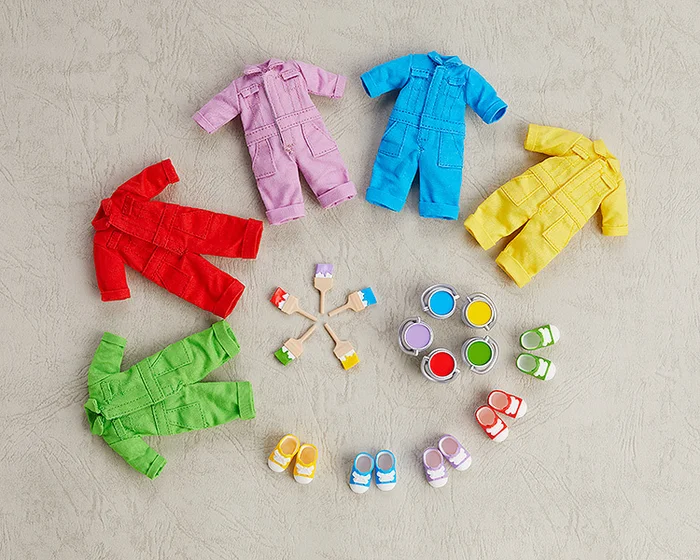 Let your Nendoroid Dollβs creativity flow with these colorful coveralls from Good Smile Company in cooperation with Sawada Koubou as well as costume and pattern planning by Mieko Akimoto. Available in bright colors, they will pop as part of your figure display! Display them next to you while you create as inspiration and motivation! Each set includes a coveralls as well as a matching paint can, paint brush, and pair of sneakers with magnets in their soles. Choose your favorite color or collect them all to make a cute display of multiple Nendoroid Dolls as if they are painting a large mural together!