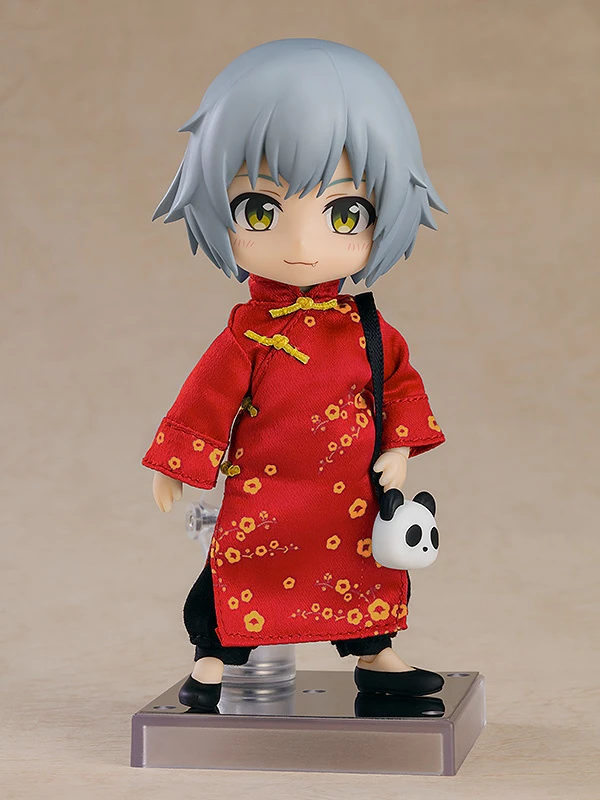 Give your Nendoroid Doll an elegant, traditional makeover with this Chinese-style outfit set from Good Smile Company! Included is a real fabric outfit consisting of a long top available in either red or blue that features a gold floral design and gold knot button details, bottoms, a panda-shaped pochette, and shoes with magnetic soles.