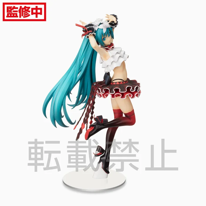 From Sega comes this affordable Hatsune Miku figure of her “Breathe with You” appearance designed by Siracomgi as seen in numerous Project DIVA games for the song “Two Breaths Walking”. Her multi-frilled outfit has been well-sculpted and her red-to-black ombre boots look great too! The shading of her skin also gives her a realistic look, especially her cute midriff. Display this special Miku in your collection! Measures 9.4″.