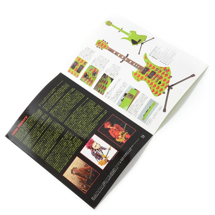 This miniature includes an explanation with photographs of hideβs GREEN HEART guitar. Compare the photos of the original to this 1/8 scale replica and learn about the history and construction of this model guitar.