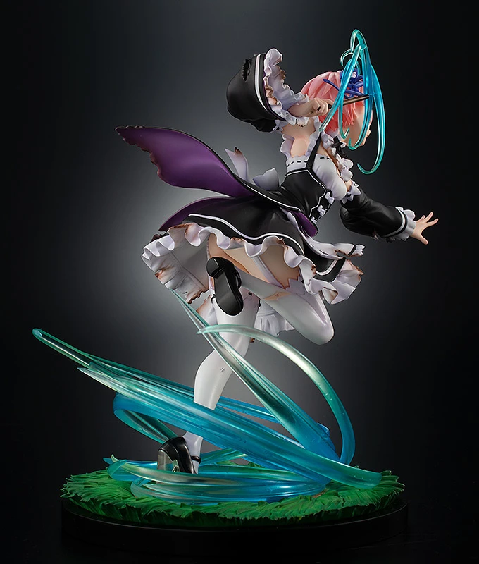 From Kadokawa with sculpting by Design COCO comes a 1/7 scale figure of the Roswaal mansion maid Ram from the popular anime Re:Zero -Starting Life in Another World- in a dynamic action pose! Measuring 9.3″, the figure recreates the intense scene of her battling against Roswaal as she works with Emilia to disperse Sanctuary’s barrier, and itβs packed with details to enjoy including the damaged look of her familiar maid outfit, the effects swirling around her as she uses her El Fura wind magic, and her fierce, determined expression. Donβt miss out on adding this action-packed figure of Ram to your collection!