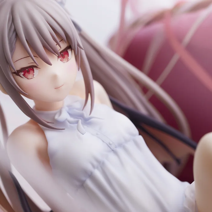 Illustrator rururdoβs original character Koakuma-chan has been brought to life in 3D form by Union Creative and sculptor Design COCO. She rests sitting on the ground with one leg extended in a white dress as she smiles with an expression that makes us wonder what sheβs thinking about. Her hair is cutely pulled up in two pigtails with striped bows, and her bat wings extend from her back with pretty ombre paintwork. Her soft curves and slightly curled toes look like they were given a lot of attention in both sculpting and shading to look so well done. Even her cheeks have a subtle pink hue. Find a spot for her to rest in your collection.
