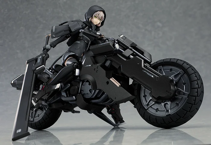 Ichi [another]’s body has been crafted with a specially articulated neck and cape, as well as interchangeable skirt parts for riding poses when placed on the ex:ride BK91A (sold separately). She’s dressed all in black and wears killer futuristic heels to match her sword equipment. This is a marvelous figure for action fans.