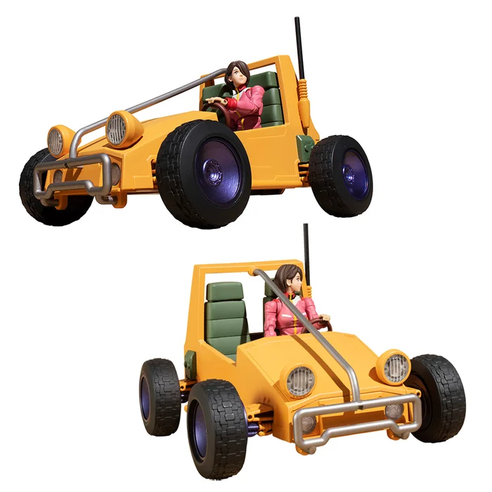 Fraw is captured as a fixed-pose figure with her hand on her hip as her skirt gently flutters, and she also comes with an interchangeable arm part to display her either holding her bag or a Haro. Meanwhile, both Amuro and the Earth Federation soldier are fully articulated so you can recreate a variety of poses and come with optional parts including interchangeable face plates, hands, binoculars, a backpack, weapons, and more. Last but not least, also included is the seriesβ familiar V-01 Buggy, which has been faithfully recreated based on its appearance in the anime and features movable wheels!